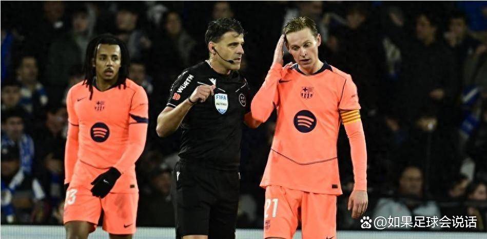 另一个插曲发生在比赛早些时候。巴萨球员费尔明攻入一球,曼萨诺最初判定进球有效。但VAR再次介入,指出进球前巴萨球员奥尔莫对皇家社会球员久保建英有犯规行为。曼萨诺观看回放后确认,奥尔莫在触球前先踢到了对方球员,因此判定犯规,进球无效。这个判罚直接导致巴萨到手的进球被取消,皇家社会感到些许安慰,而巴萨自然心有不甘。裁判则成为了这场争议的“夹心饼干”,左右为难。